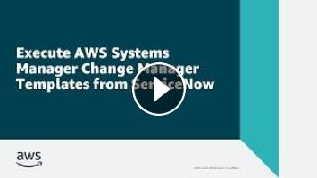 In this video, you’ll see how to execute AWS Systems Manager Change Manager templates from ServiceNow. With the AWS Service Management Connector for ServiceNow, you can synchronize approved change templates from Change Manager into ServiceNow, execute the templates as change requests, and view the change execution within ServiceNow.