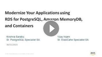 Do you know if your application could benefit from leveraging a microservices-based architecture? In this webinar, learn about how you can leverage Amazon Relational Database Service (Amazon RDS) for PostgreSQL, Amazon MemoryDB, and Amazon Elastic Kubernetes Service to develop a flexible solution for your workloads. Learn how these services can work together to provide you with high availability, scalability, and more.