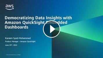 Discover how you can bring data insights to the forefront for customers, partners, and internal teams, by seamlessly embedding rich, interactive data visualizations and dashboards into your web applications and portals. In this session, we’ll show you how to connect to your data from Amazon RDS, Amazon Athena, Amazon S3, Amazon Redshift and many others, and use the QuickSight API to tie it all together. Plus, we’ll share modern ways to allow users to interact with data using natural language search and ML to see root causes, consider forecasts, evaluate risks, and make well-informed, justifiable decisions.