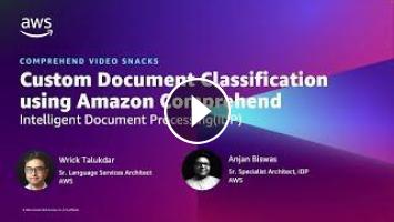 Use Amazon Comprehend custom classification to organize your documents into categories (classes) that you define. Amazon Comprehend is an AI service from AWS, which uses natural language processing (NLP) to derive and understand valuable insights from text within documents.