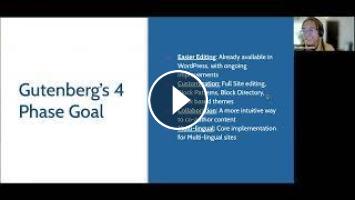 In this session we will discuss the beta Gutenberg plugin, it's role as WordPress’s “block editor”, and its project that follows a four-phase process that will touch major pieces of WordPress — Editing, Customization, Collaboration, and Multilingual.