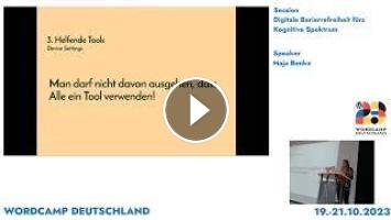 View this video and others on WordPress.TV: https://wordpress.tv/2023/10/20/maja-benke-digitale-barrierefreiheit-furs-kognitive-spektrum/