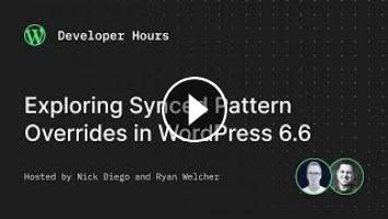 In this Developer Hours session, we explored how you’ll be able to implement overrides in 6.6 (or today using the Gutenberg plugin) and how they work under the hood. You will learn: