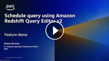 This video shows how to schedule queries in Amazon Redshift using Amazon Redshift Query Editor V2.