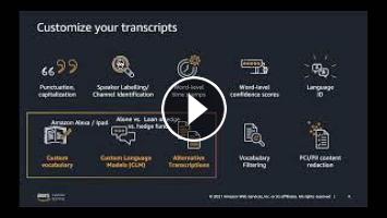 Amazon Transcribe is an automatic speech recognition service that makes it easy for developers to add speech to text capabilities to their applications. Amazon Transcribe can be used to transcribe customer service calls, to automate closed captioning and subtitling, and to generate metadata for media assets to create a fully searchable archive. You can also use Amazon Transcribe Medical to add medical speech to text capabilities to clinical documentation applications. Subscribe to AWS Online Tech Talks On AWS:
