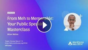 View this video and others on WordPress.TV: https://wordpress.tv/2024/04/10/from-meh-to-memorable-your-public-speaking-masterclass/