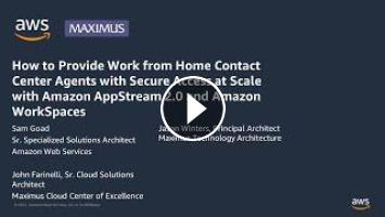 Contact Center agents are increasingly working from home while accessing sensitive corporate and customer information. Organizations are looking for ways for these agents to securely access the contact center and other applications they need in order to get their job done. Amazon AppStream 2.0 and Amazon WorkSpaces are fully managed cloud native desktop virtualization services that enable this secure access and can be deployed to new agents in minutes not months. Designed for IT Decision Makers for End User Computing and Contact Center business leaders, this session will provide an in-depth look at how Amazon AppStream 2.0 and Amazon WorkSpaces can provide secure remote access anywhere, anytime from any device, and will deep dive on best practices in architecting for a scaled contact center. This session features Maximus - a leading provider of health and human services worldwide – detailing how they architected their 40K seat WorkSpaces deployment for contact center agents.
