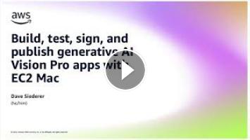 In this talk, learn how customers are utilizing on-demand cloud-based EC2 Macs to build, test, sign, and publish their iOS, iPadOS, macOS, visionOS, tvOS, watchOS, and Safari apps for TestFlight testing or directly to the App Store. Specifically, we will build a visionOS app with Amazon Bedrock, using the Anthropic Claude generative AI model. Once our app is built, it is pushed to TestFlight and run on actual Vision Pro hardware.