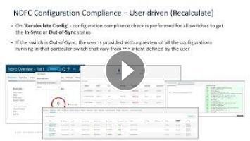 This demo explains the Configuration Compliance feature in Cisco Nexus Dashboard Fabric Controller (NDFC) 12. Learn how to use the Recalculate Config option to verify switch compliance, detect out-of-sync configurations, and preview variances for better network alignment and management.