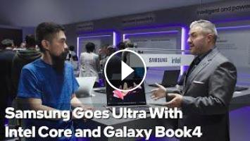 Talking Tech doubles down on ultra with Samsung at #CES2024. The 16-inch Galaxy Book4 Ultra lives up to its name with the top spec sporting an Intel Core Ultra 9 processor and RTX 4070 laptop GPU chilled by a larger cooling solution than last year. They drive a Dynamic AMOLED 2X display that can automatically adjust the contrast and color temperature to optimize output for the ambient environment. The Pro lineup features built-in Intel Arc graphics, multiple sizes, and a versatile 2-in-1 option in the Galaxy Book4 Pro 360. You can also go 2-in-1 in the entry-level Galaxy Book4 series, and there are more touchscreen options across the family.
