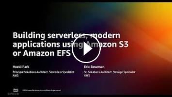Serverless technology helps you build modern applications with increased agility and lower total cost of ownership. You can focus on product innovation and shorten your time to market without worrying about provisioning, maintaining, and scaling servers for backend components such as storage. In this tech talk, learn how to start innovating with serverless technology from Amazon S3 and Amazon EFS.