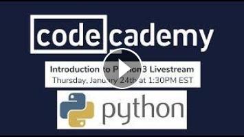 Join Codecademy Curriculum Developer Tim as he gives an introductory Python 3 lesson. You'll learn why Python is such a powerful and popular language, and talk about common errors and how to get past them. Beginner programmers are more than welcome!