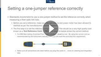 Standards say, in most cases, you should set your fiber reference using a one-jumper method. This video takes you through the process and helps you make sure you get it right the first time.