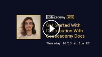 Are you interested in learning how to get started with making contributions to repositories? This livestream will introduce you to Codecademy Docs, a community-driven collection of code and technology documentation, and step through how to access the Docs repository and begin your journey as a contributor!