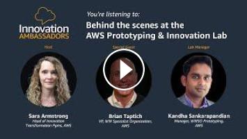 On this special episode of Innovation Ambassadors, explore "behind-the-scenes" of AWS prototyping engagements at the Santa Clara Prototyping and Innovation Lab. Get a virtual tour and deep dive into the latest innovations from AWS partners: Genymobile, Equinix, Seagate, dSPACE, ICI, Vaisala and Marelli.