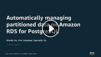 ****To download a copy of the slide deck from this webinar visit: https://pages.awscloud.com/Automatically-managing-partitioned-data-on-Amazon-RDS-for-PostgreSQL_2022_1006-DAT_OD Subscribe to AWS Online Tech Talks On AWS: