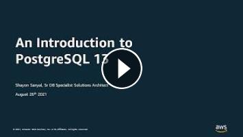 PostgreSQL 13 is the latest major version of one of the most popular open source databases, and includes a number of enhancements to performance, reliability, security, manageability, and more. Learn about what's new in PostgreSQL 13 and how you can get more out of your database with features like de-duplication of B-tree index entries, improved performance for queries that use partitioned tables, incremental sorting to accelerate data sorts, and more. Also, learn how easy it is to run highly available PostgreSQL 13 databases in AWS with Amazon RDS for PostgreSQL.
