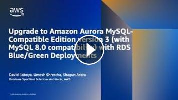 This video is part two of our Amazon Aurora upgrade series. With the Amazon Aurora MySQL-Compatible Edition version 3 (with MySQL 8.0 compatibility), you can use the latest MySQL-compatible features, performance enhancements, bug fixes and other innovations like Amazon Aurora I/O-Optimized.