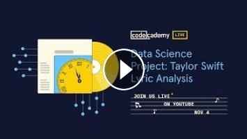 Above, Codecademy Data science Domain Manager Michelle McSweeney will teach you how to use machine learning and natural language processing to find insights and trends in Taylor Swift’s music, from the beginning of Taylor’s career all the way to her latest album Midnights. You’ll use your data analysis and visualization skills to find patterns, themes, and even emotions hidden behind the lyrics. And while this one will surely be a treat for the Swifties, you can use these tools to analyze any artist’s music.
