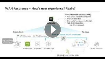 This video provides an overview of the Juniper Mist WAN Assurance feature that allows you to deliver a great user experience across your wide area network (WAN) and simplify your IT operations with Mist AI. WAN Assurance lets you set service level expectations for the WAN then shows you factors in the WAN that cause poor user experience. WAN Assurance uses streamed telemetry data from the SRX Series WAN edge device and uses ML algorithms to provide insights about the WAN and to surface elusive anomalies that impact user experience.