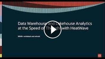 In this demo, you will see how HeatWave Lakehouse enables you to query data from object storage in a variety of formats, using MySQL query syntax, refresh this data as new data arrives in object storage, write back from HeatWave to object storage, and use this data as a new data source.