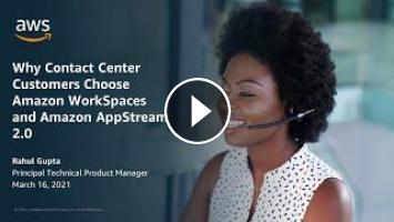 Contact center agents are the front-line to customer experience and customer satisfaction. Today, organizations around the world are looking to empower their contact center agents with the data, applications, and other resources they need to successfully serve the evolving needs of their customers. In this tech talk, we will cover key business challenges that organizations face as they attempt to modernize and scale their contact centers and how Amazon WorkSpaces and Amazon AppStream 2.0 can address these challenges in a scalable, secure, reliable, compliant and cost-effective manner. We will also provide real-world examples from current customers who have successfully enabled their contact center agents to get their job done securely, productively, and reliably with our services and as a result accelerated their digital transformation.
