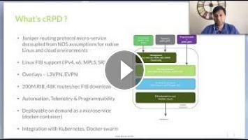 This vlog provides an introduction and overview of Juniper's cloud-native routing solution (cRPD). It is the first in a series that will explain the concepts and use cases.