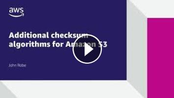 Amazon S3 accelerates integrity checking of requests by up to 90%. You can choose from four supported checksum algorithms for data integrity checking on your upload and download requests. You can choose a SHA-1, SHA-256, CRC32, or CRC32C checksum algorithm, depending on your application needs. Watch this short demo for a walk-through on Amazon S3's new data integrity verification features.