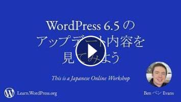 View this video and others on WordPress.TV: https://wordpress.tv/2024/03/29/wordpress-6-5-%e3%81%ae%e3%82%a2%e3%83%83%e3%83%97%e3%83%87%e3%83%bc%e3%83%88%e5%86%85%e5%ae%b9%e3%82%92%e8%a6%8b%e3%81%a6%e3%81%bf%e3%82%88%e3%81%86%ef%bc%81/