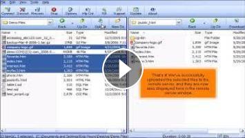 This tutorial assumes you’ve already installed FTP Voyager and that you are currently running it on your computer. Click the connect icon, and select the site that you want to connect to, then click connect. Your local files are displayed on the left-hand screen, and the remote files are shown on the right. Select the files that you want to transfer, then click the upload button.