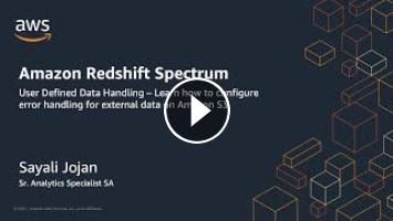This video is to demo the new Redshift spectrum feature for user defined data handling that enables customers to configure properties to handle invalid characters, surplus characters and numeric overflow values for external data in Amazon S3.
