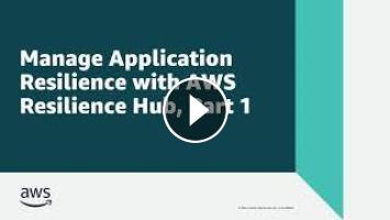 In this video, you'll see Part 1 of how you can manage application resilience with AWS Resilience Hub. In Part 1 of this three-part demonstration, you’ll learn how to publish your application resources and resiliency policy, run a resiliency assessment, and act on resiliency recommendations.