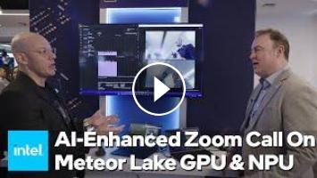 One of the promises of the AI PC and of Meteor Lake specifically is that they can enhance some of the experiences that are now ubiquitous in our always-online lives. When it comes to hybrid and remote work, there are few programs as ubiquitous as Zoom. In this demo, we see how efficiently the Intel Core Ultra’s NPU handles sustained, low-power AI workloads, in this case background blur during a video call. Ordinarily most of the analysis and processing required to determine foreground and background pixels and apply blur effects to the background would be handled by the GPU. The NPU sustains this process while using much less power, with headroom to spare. This frees up valuable resources across the CPU and GPU for running applications, background processes, video encode and decode, and more.