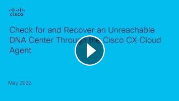 This video demonstrates how to check the DNA Center reachability status in CX Cloud and recover the connection through the CX Cloud Agent if the DNA Center is unreachable.