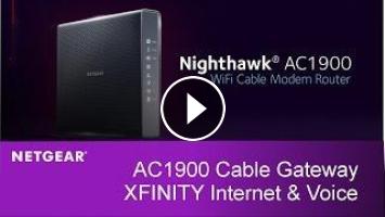 The NETGEAR Nighthawk® AC1900 WiFi Cable Modem Router with XFINITY® Internet and Voice. The ideal officially certified and unparalleled choice for XFINITY® Internet and Voice services.
