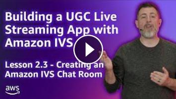 In lesson 2.1, we saw how StreamCat persists a user to the database in the handler for the `/register` endpoint within the application and in lesson 2.2 we saw how to create and associate a dedicated Amazon IVS channel for each user. In this lesson, we'll see how the StreamCat application uses the AWS SDK for JavaScript (v3) to create an Amazon IVS chat room for a user.