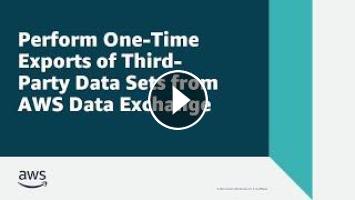 In this video, you'll see how you can perform one-time exports of third-party data sets from AWS Data Exchange. To suit your use case, you can download single file assets to your local computer, or export specific data revisions or entire data sets from your third-party data subscriptions to an Amazon Simple Storage Service (or Amazon S3) bucket.
