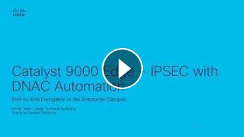 Learn how to achieve End-to-End Encryption in the Enterprise Campus comprising of Cisco Catalyst 9000 Switches. This session briefly covers LAN and WAN MACsec Encryption and focuses more on the recent addition of IPsec Encryption support and its use cases along with DNAC Automation.