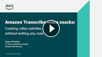 Subtitle creation on video content poses challenges no matter how big or small the organization. To address those challenges, Amazon Transcribe has a helpful feature that enables subtitle creation directly within the service. There is no machine learning or code writing required to get started. This Amazon Transcribe video snack will walk you through setting up a no-code workflow for creating video subtitles using Amazon Transcribe within your Amazon Web Services account.