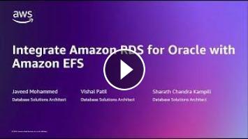 In this session, we walk you through a step-by-step configuration to set up Amazon EFS on an Amazon RDS for Oracle database instance. We also talk about the benefits of this integration, and the best practices to consider while doing so.