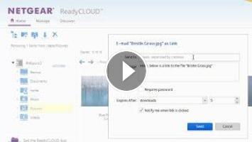 NETGEAR ReadyNAS is your central storage device which houses your hard drives and your files. ReadyCLOUD is the service that connects to ReadyNAS, allowing you to access, upload, share, and stream your content from anywhere using virtually any device. This video will introduce a feature in ReadyCLOUD which will allow you to send files to friends, family, and co-workers as a link.